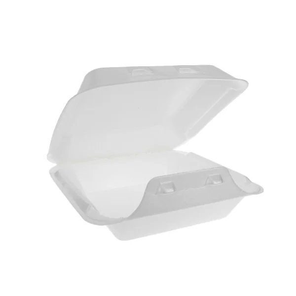 Durable 8×8 foam hinged containers with SmartLock closure, ideal for secure takeout, delivery, and single-entrée meals.