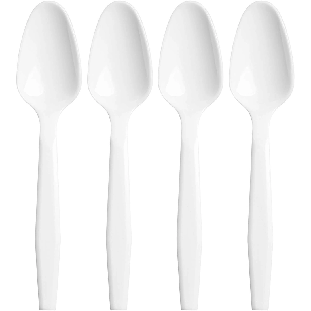 Heavy-weight white plastic teaspoons designed for durability and reliable performance in food service environments. Ideal for restaurants, catering, and high-volume events. Bulk case of 1000 spoons.